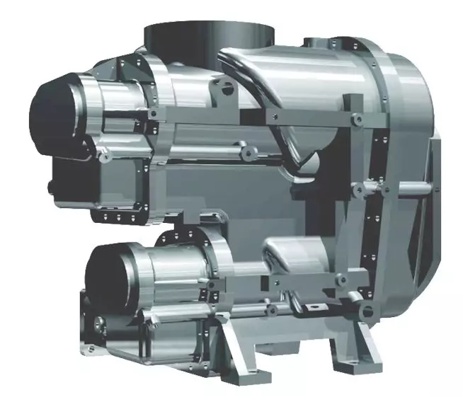 • 雙電機(jī)獨(dú)立驅(qū)動(dòng),每級(jí)壓縮比相比單級(jí)壓縮降低,轉(zhuǎn)子間泄漏回流大大降低,產(chǎn)氣量增加;
